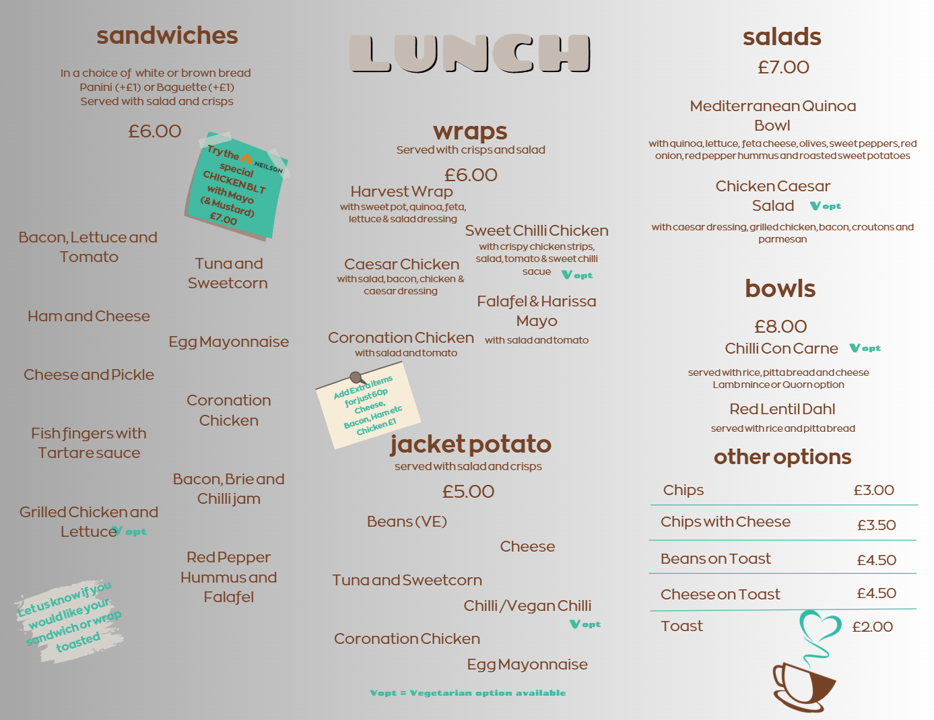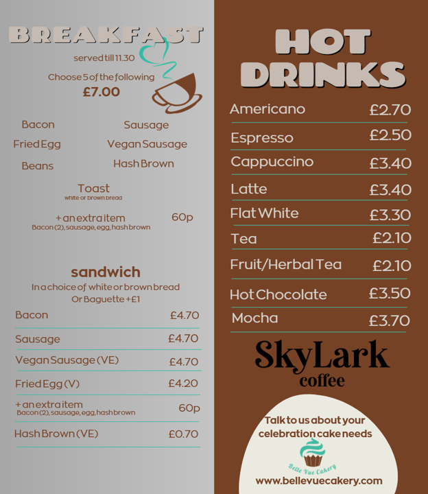 Welcome to Cafe Belle We are open Tuesday - Friday 9am - 3pm why not pop in to cafe belle and try our tasty breakfasts, paninis, sandwiches, fabulous coffee from skylark and more!